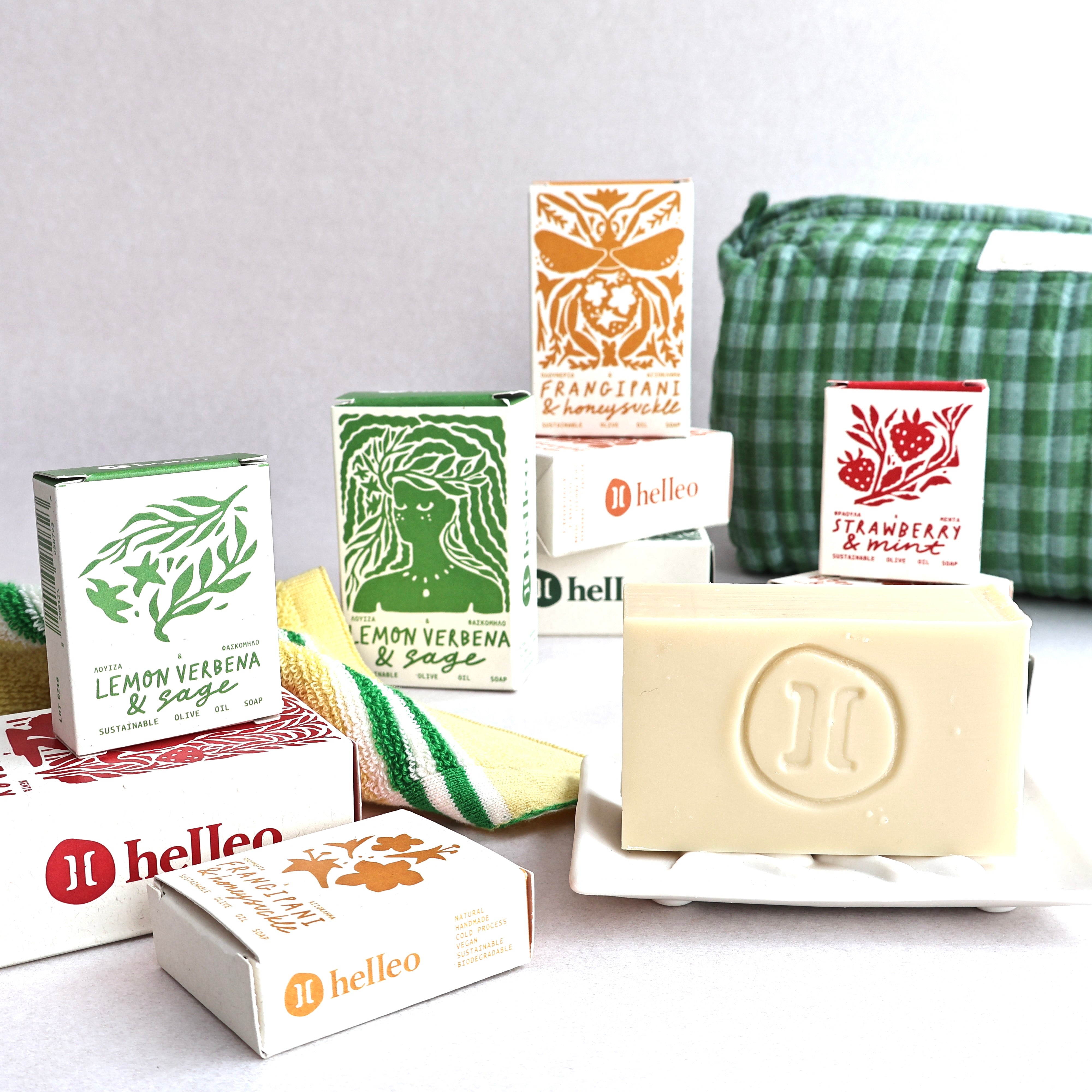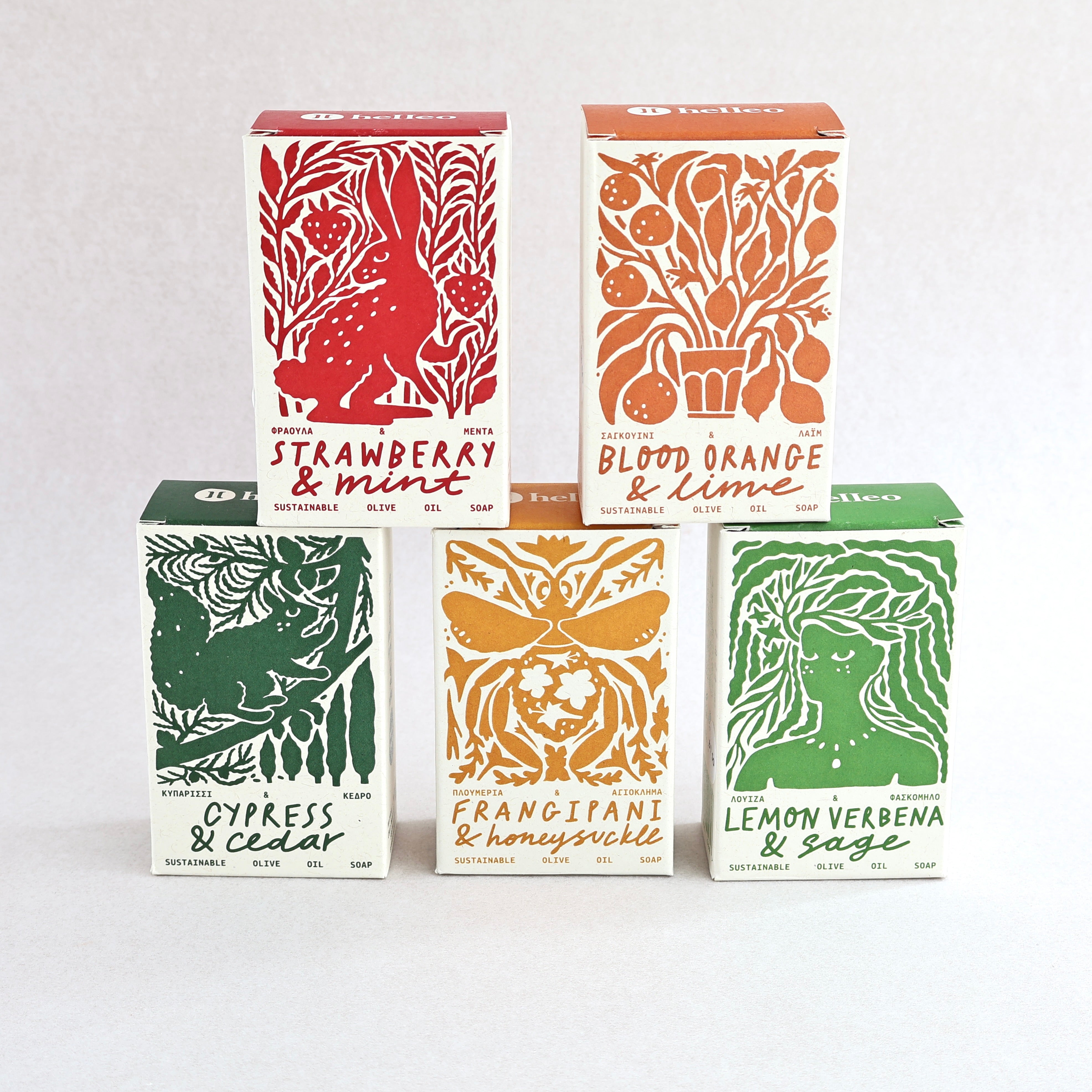 These beautiful olive oil soaps are handmade in Greece by Manos & Stelios using olives, herbs and fruit grown in their family's forest. The soaps are 100% natural, vegan and clean gently but effectively whilst the olive oil keeps the skin moisturised.