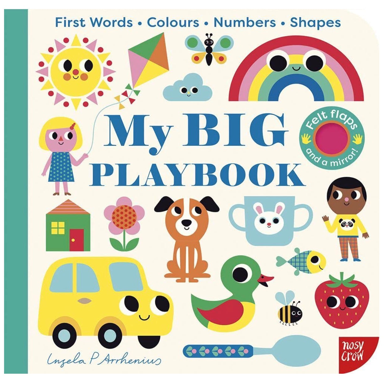 A BIG book for sharing with a little person, introducing first words, colours, numbers, shapes and more - with felt flaps and a mirror!