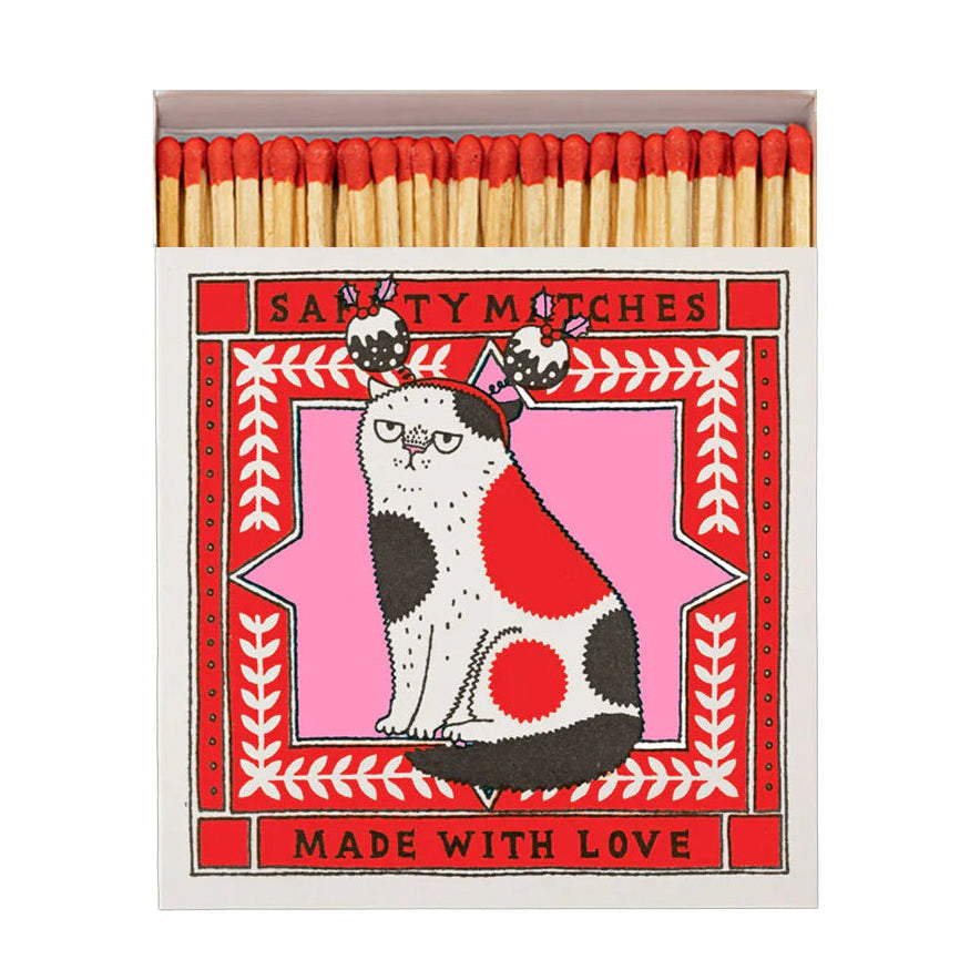 Letterpress Printed Luxury Matches - 'Festive Cat'