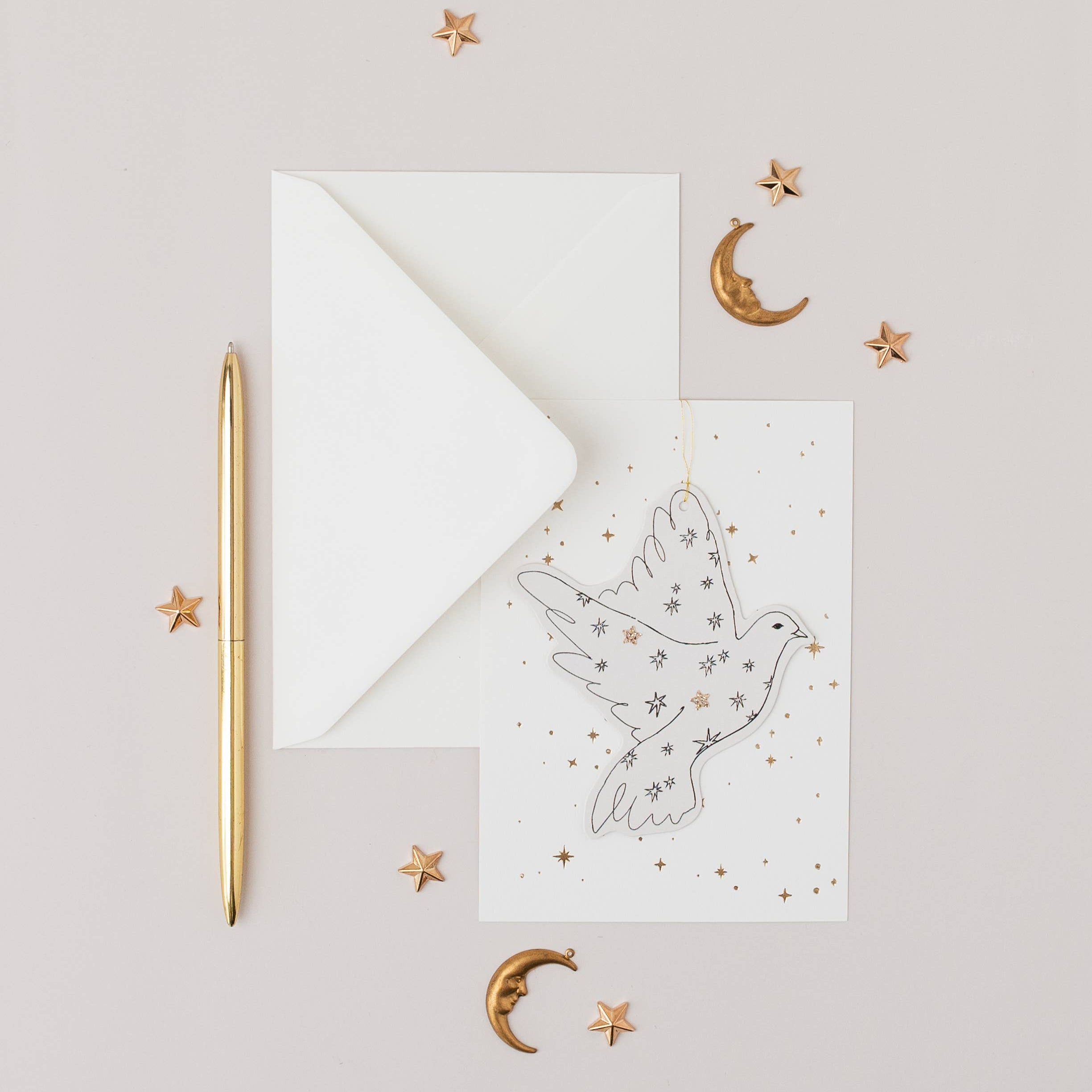 They come with a postcard and envelope for your own personal message, and once received can be hung up as an extra special decoration. Each one has been hand finished with rose gold glitter elements and is the perfect postable gift. Packed in a compostable bag. Ready to be hung on the tree and treasured for years to come.