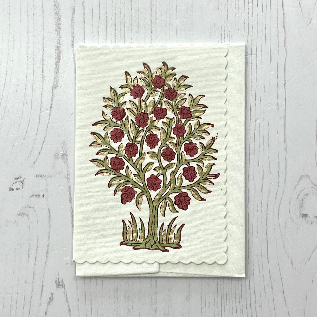Hand Block Printed Greetings Card - Mogra Scarlet