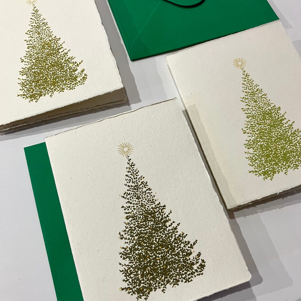 Handprinted Pack Christmas Cards - Tree
