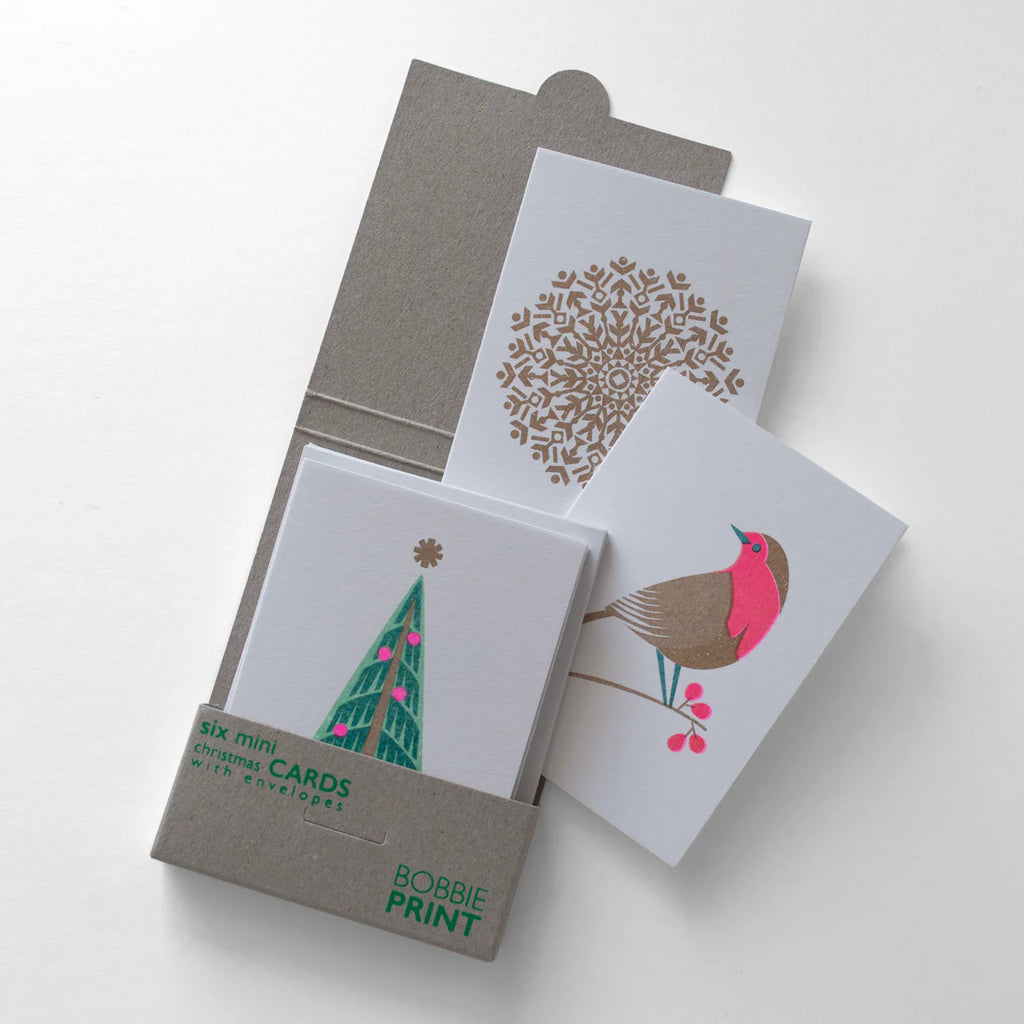 Pack of Six Mini Christmas Cards - Green