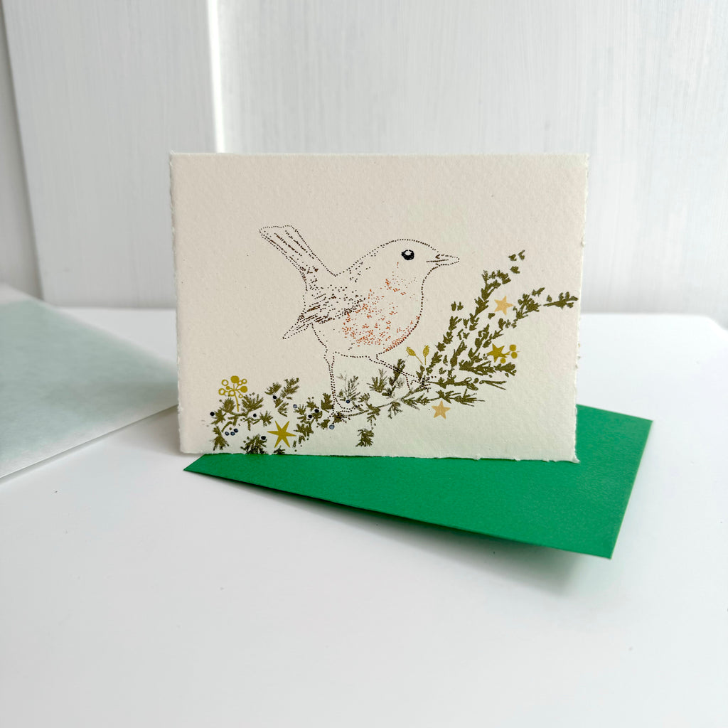 Handprinted Pack of Christmas Cards - Robin