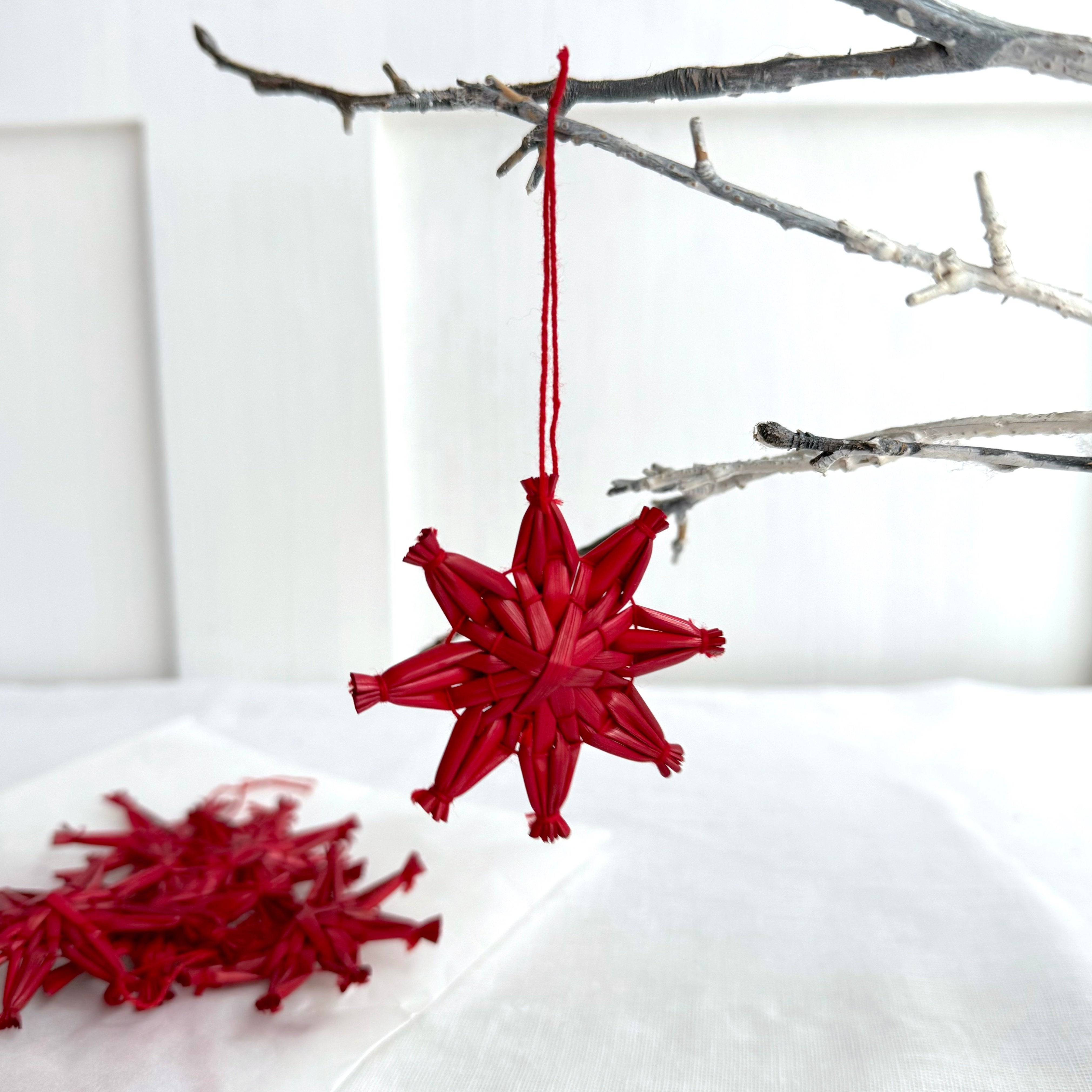 10 x Handmade Straw Star Decorations - Red