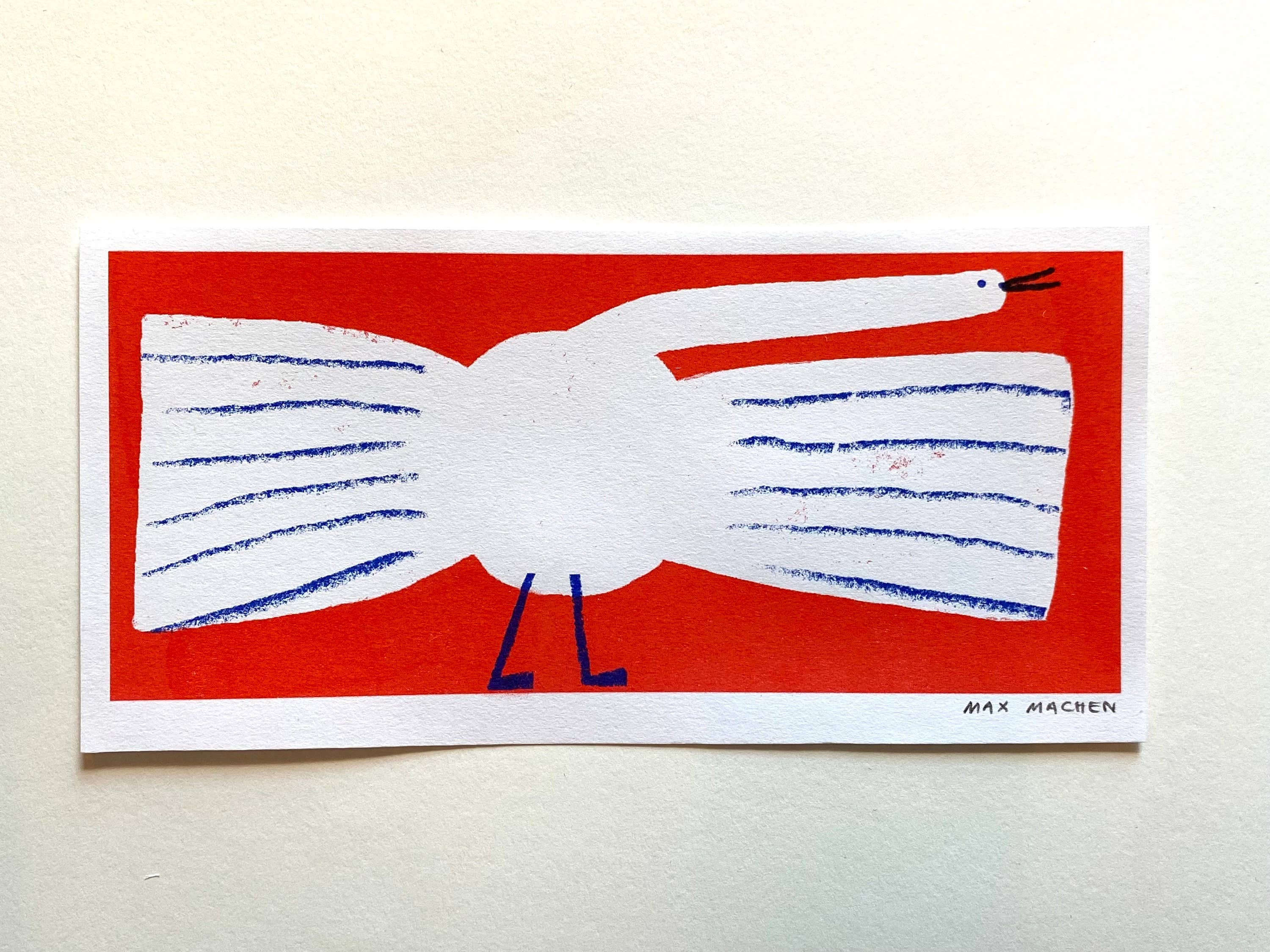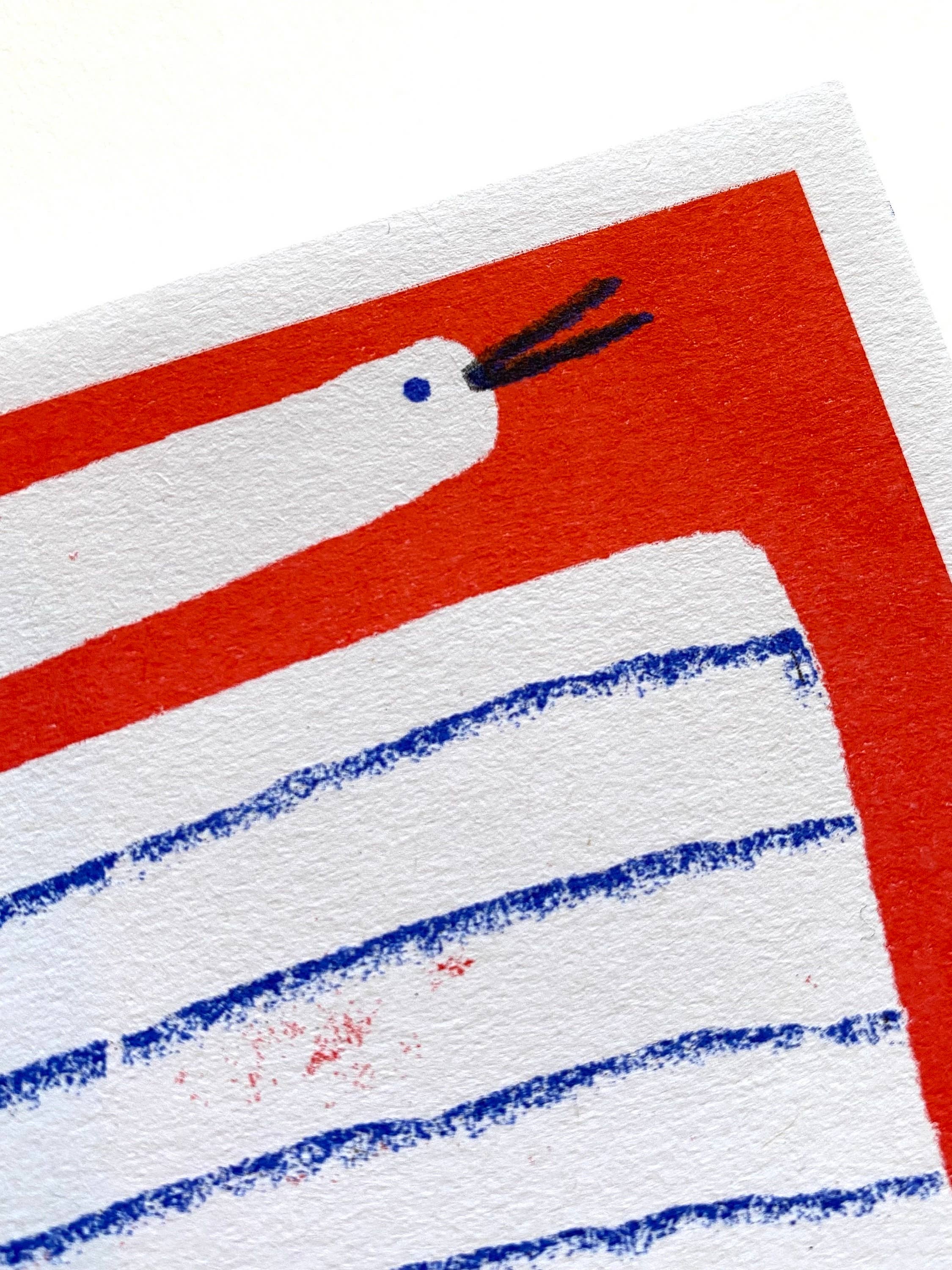 Fun honking goose 2 colour riso print for your wall. The print measures roughly 21 x 10cm and each one has been signed on the bottom right. The paper is 140gm and made from recycled cups. Thanks for looking