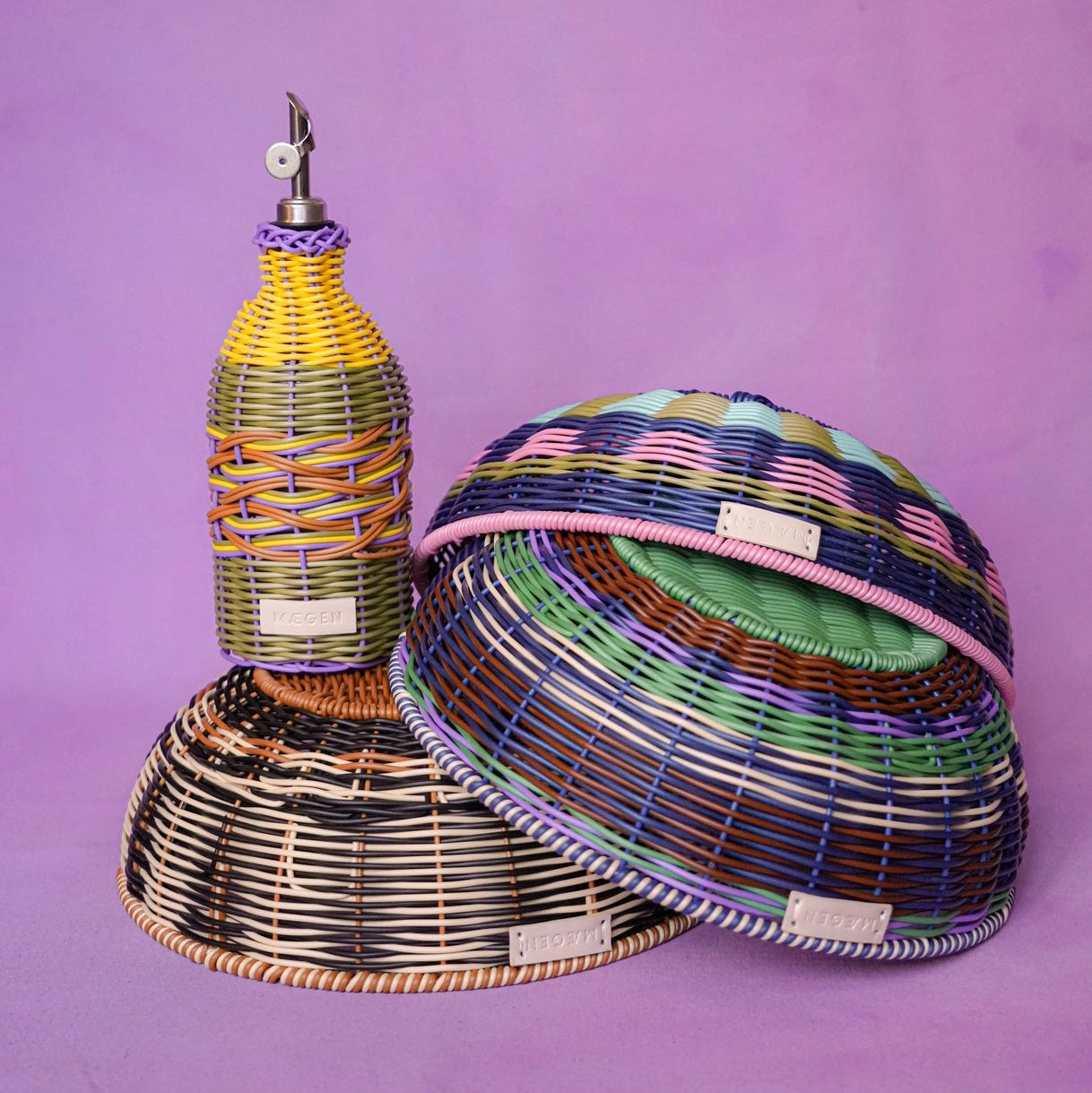 Wrapped in vibrant woven detail, this glass oil pourer, created by Maegan, turns a kitchen essential into a statement piece. Practical and easy to use with its stainless steel spout, it’s designed for smooth pouring at the table or while cooking. Durable, eye-catching, and versatile — it’s the kind of piece that looks as good on display as it works in use.