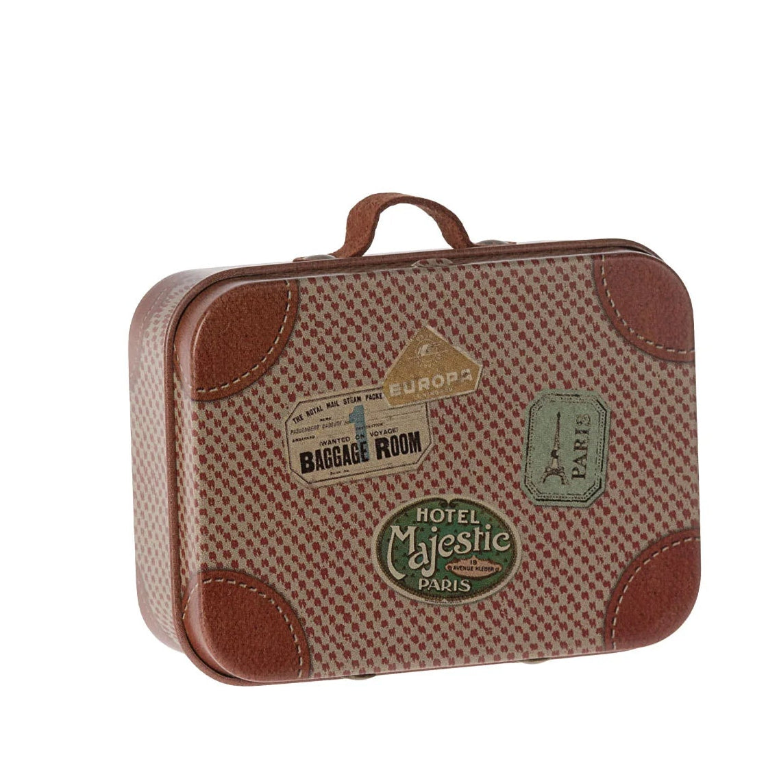 This small metal suitcase with packing labels and beautiful details can be used for any occasion: small gifts, storage of small items or for mice and small bunnies to bring their belongings on the go.