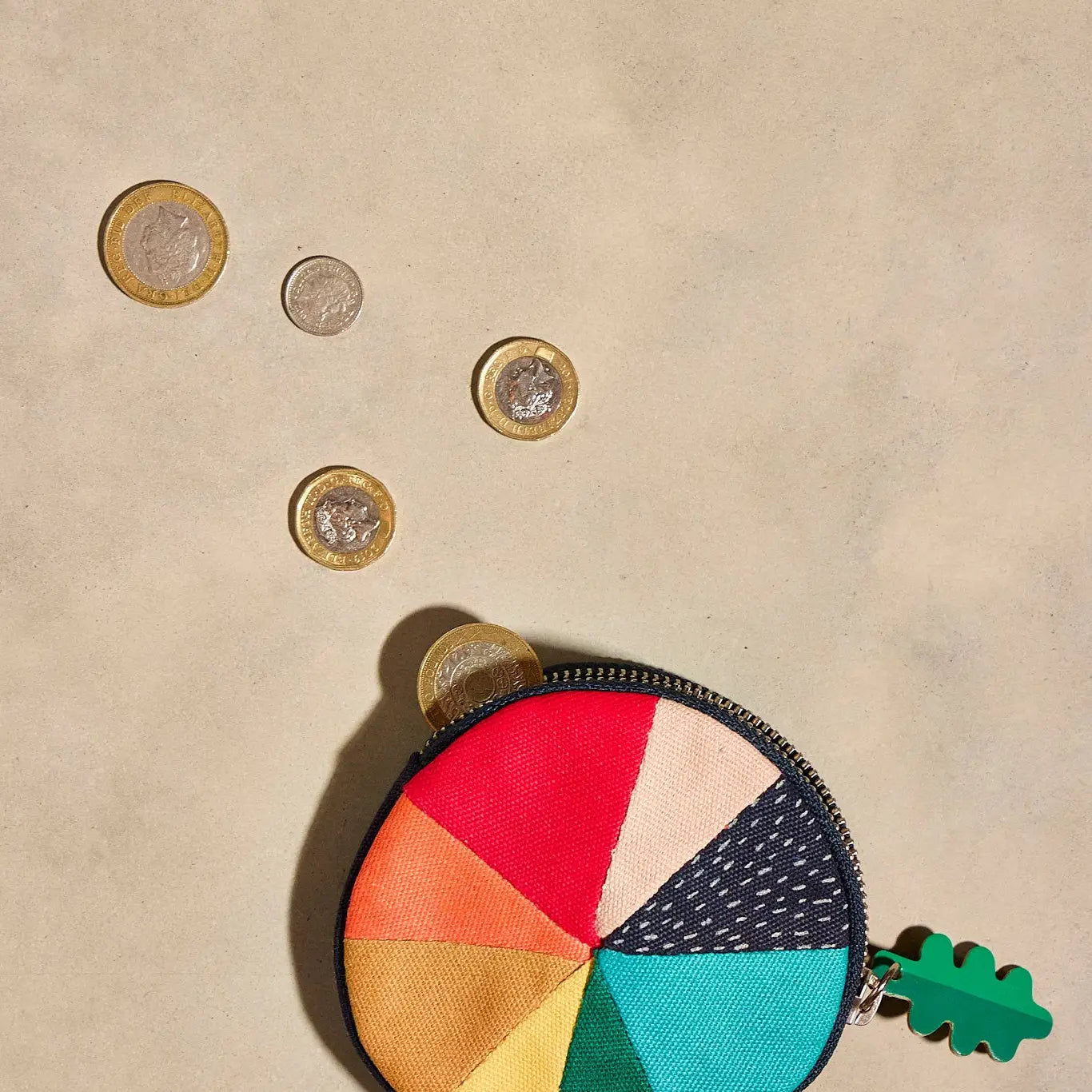 This coin purse in the shape of a colour wheel is crafted with care and just enough cheer to brighten a rainy errand. Zips up neatly with a leather leaf pull and the splash of colour means it’s easy to find at the bottom of your tote bag.