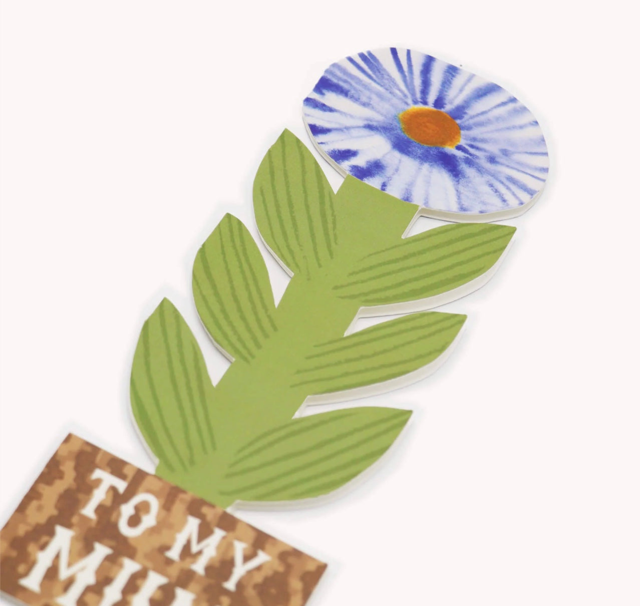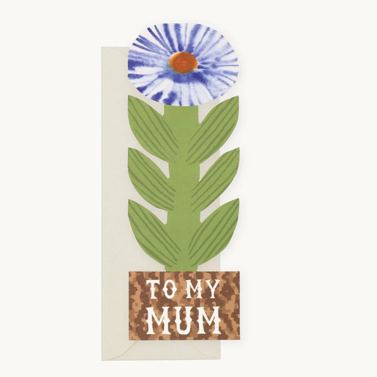Send a flower to your mum that will last, with this joyful Mother's Day card from Hadley Paper Goods. A beautiful card and decoration all in one! This card features swooshy watercolour for the flower and some 1950s brown wallpaper for the soil.