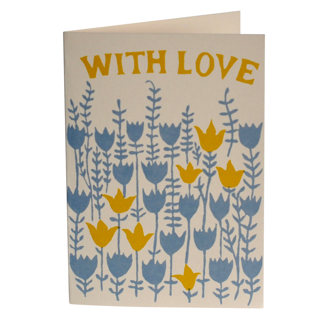 'With Love' Leaves and Stars Pack of 6 Mini Cards - Blue