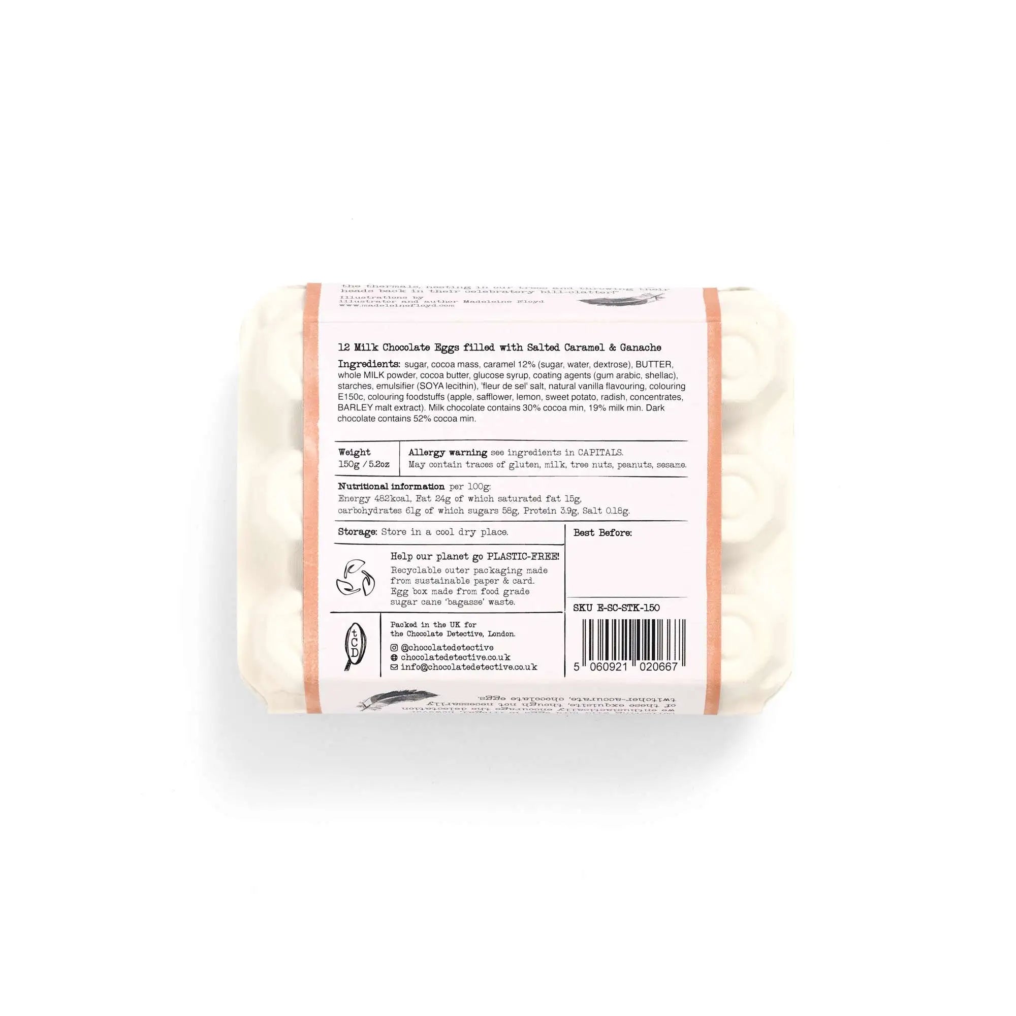 This delicious box contains 12 chocolate eggs filled with a rich, smooth salted caramel. Layers of dark and milk chocolate are then filled with ganache before being wrapped in a fine sugar shell and life-like speckles.