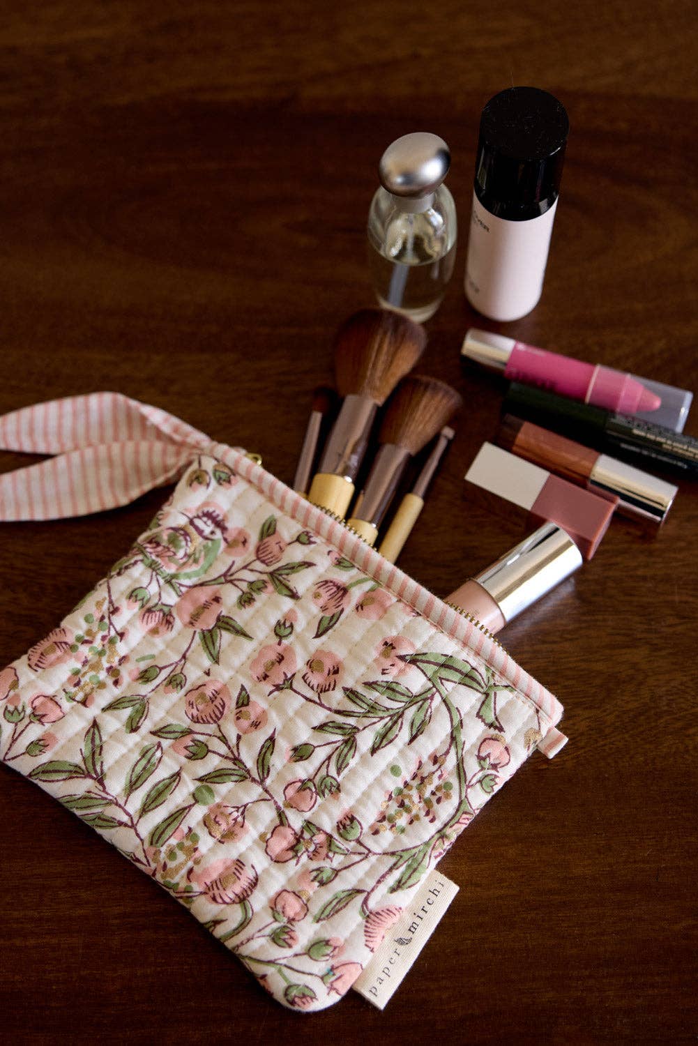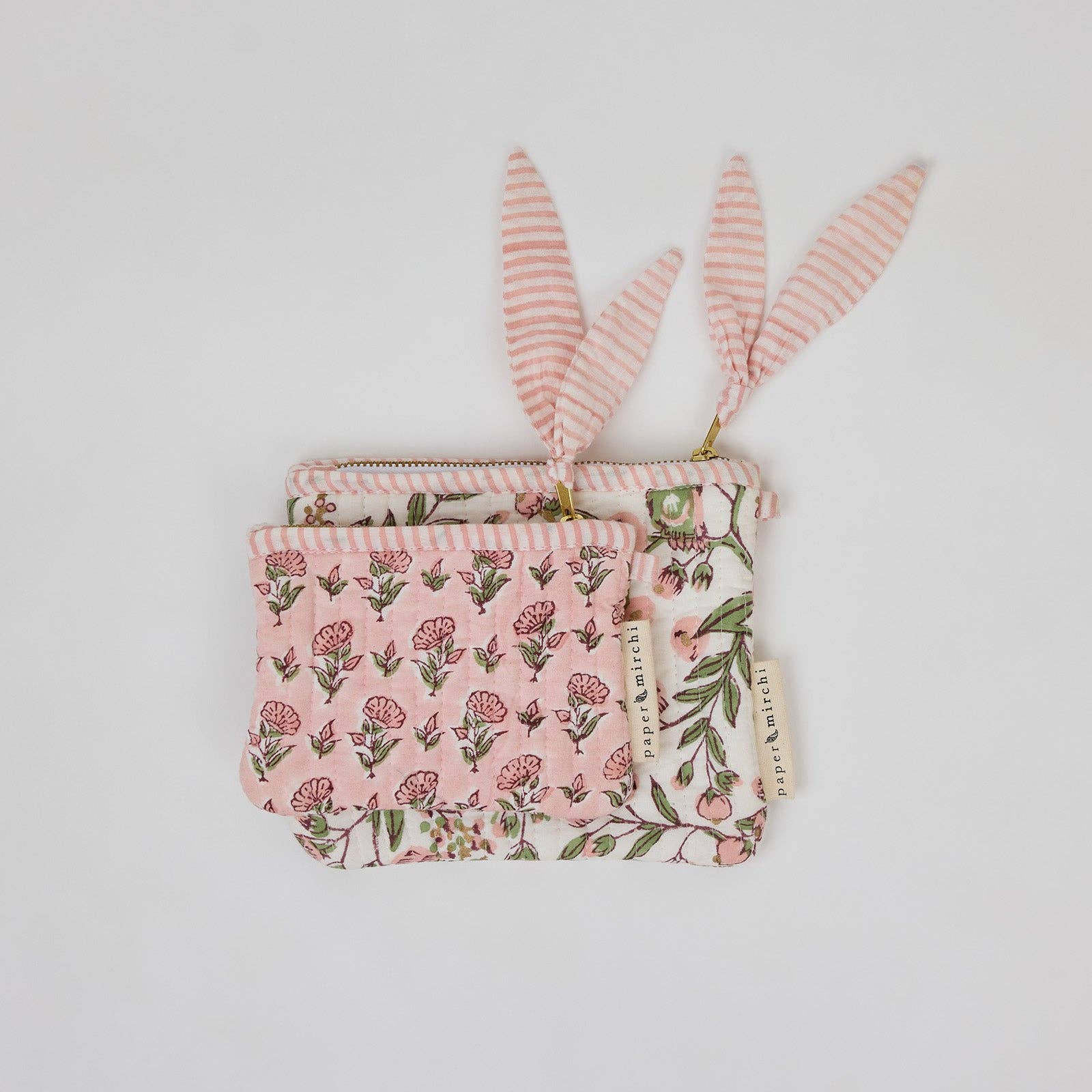Peek inside and you’ll find a beautifully block printed inner lining, making every pouch a celebration of artisanal detail. The tonal geometric zip pull adds a finishing touch of design harmony.