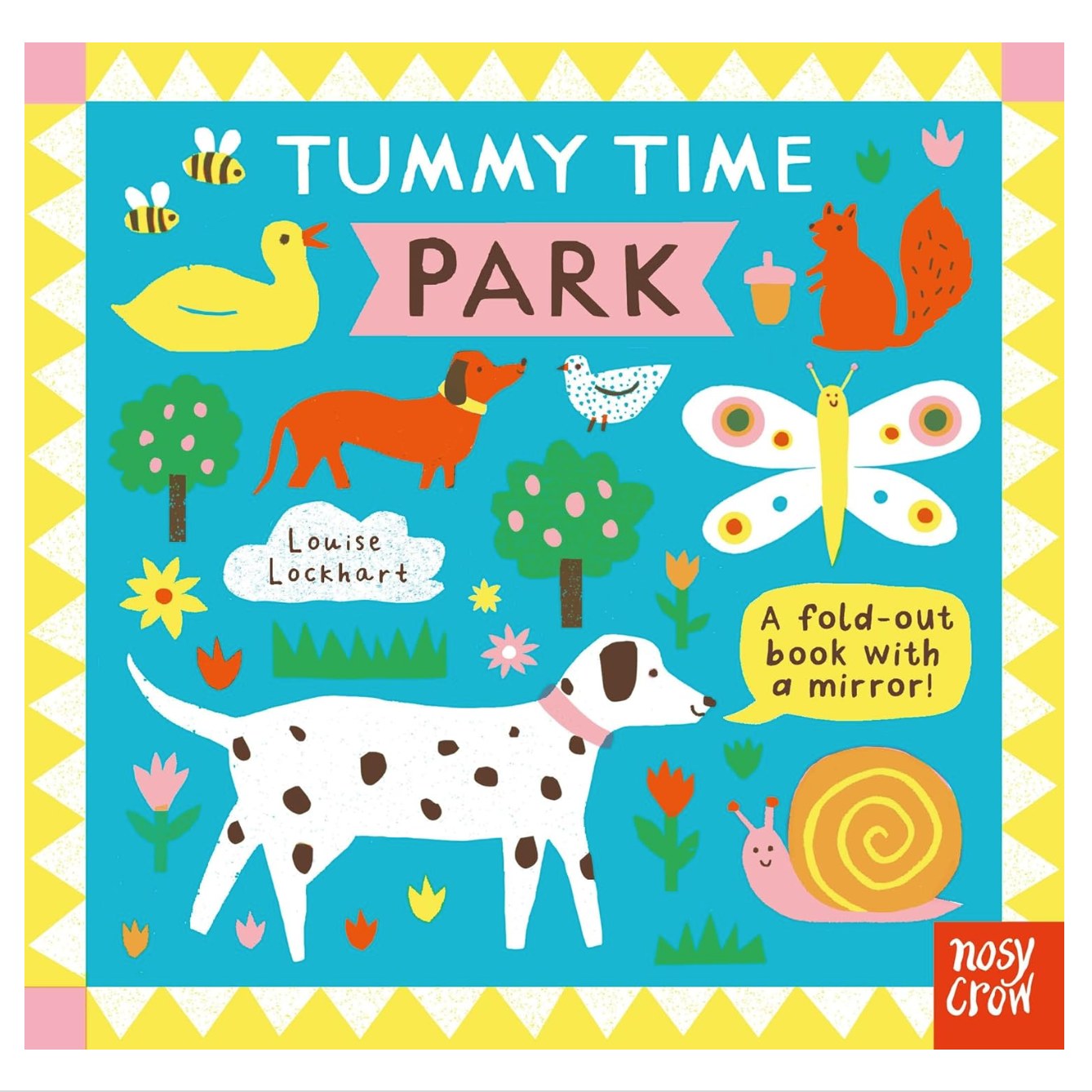 Say hello to the animals with a busy park scene on one side and friendly animal faces and a mirror for babies to see themselves on the other.This dazzling board book is designed with tummy time in mind - a gentle exercise where a baby lies on their front to help strengthen their muscles and improve their head control. The fold-out format allows the book to be spread out in-front of a baby, while the bold colours stimulate their developing eyesight. With bright, jaunty artwork from Louise Lockhart this delightful book will captivate even the wriggliest of babies.