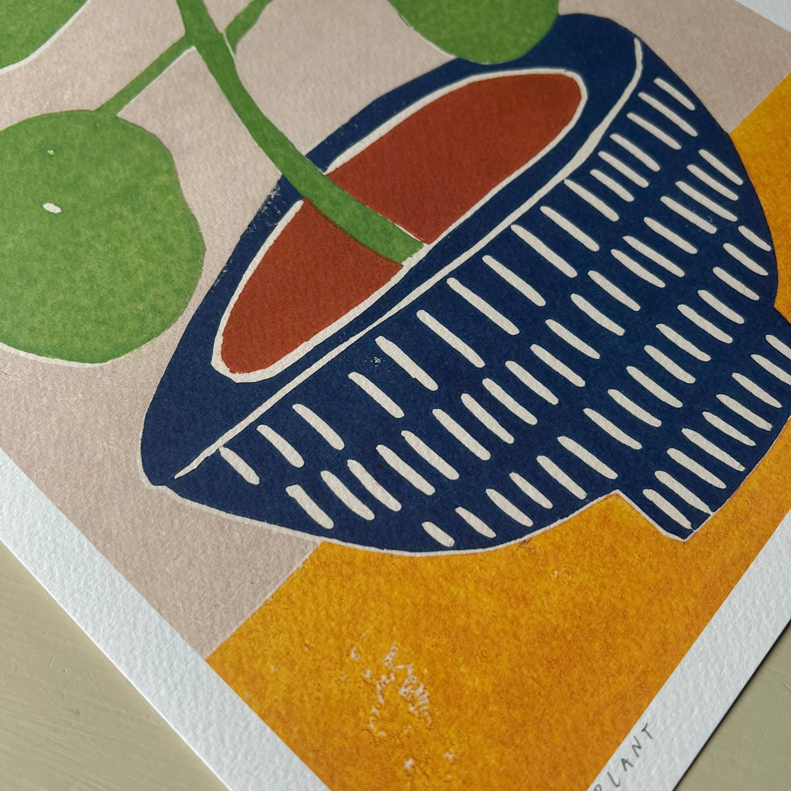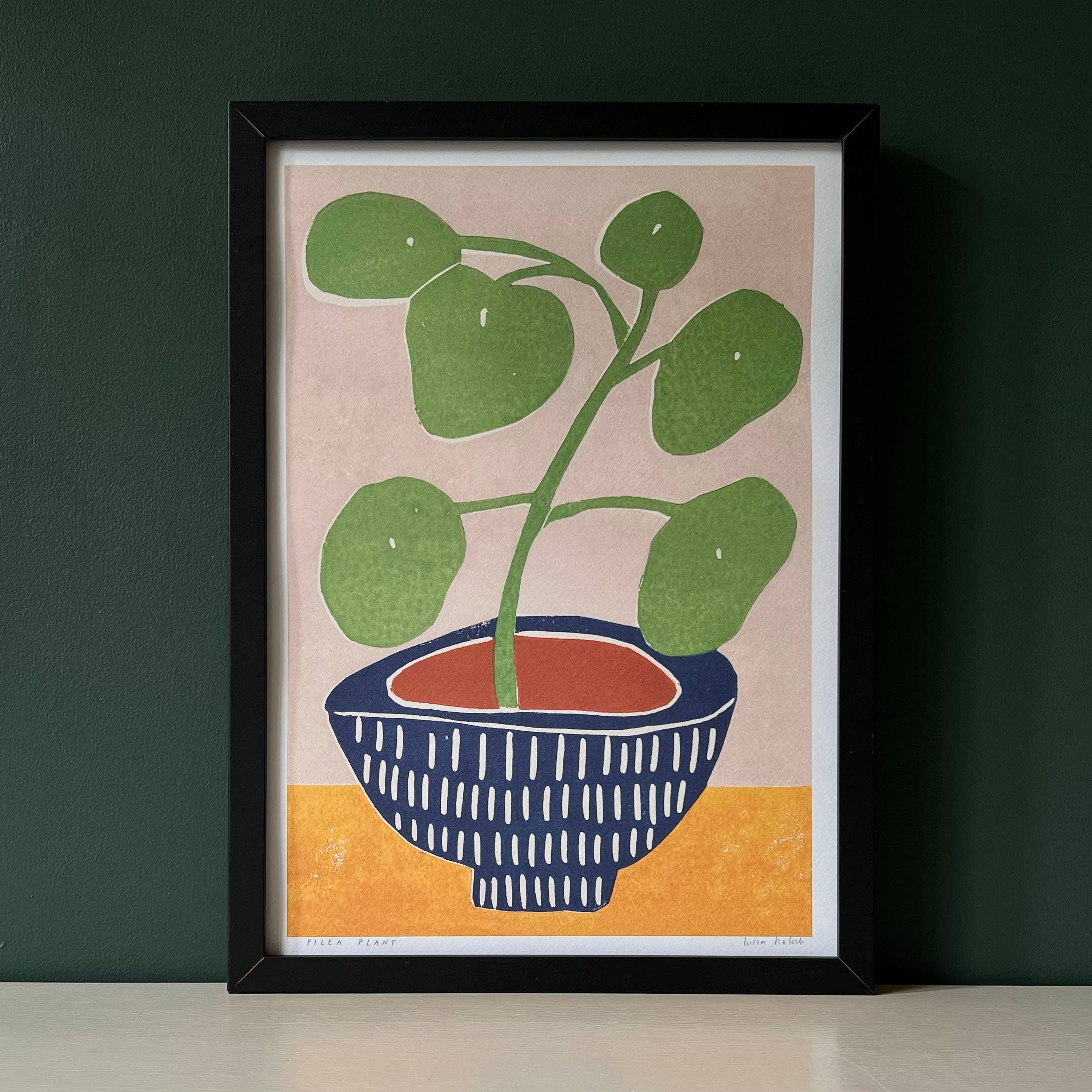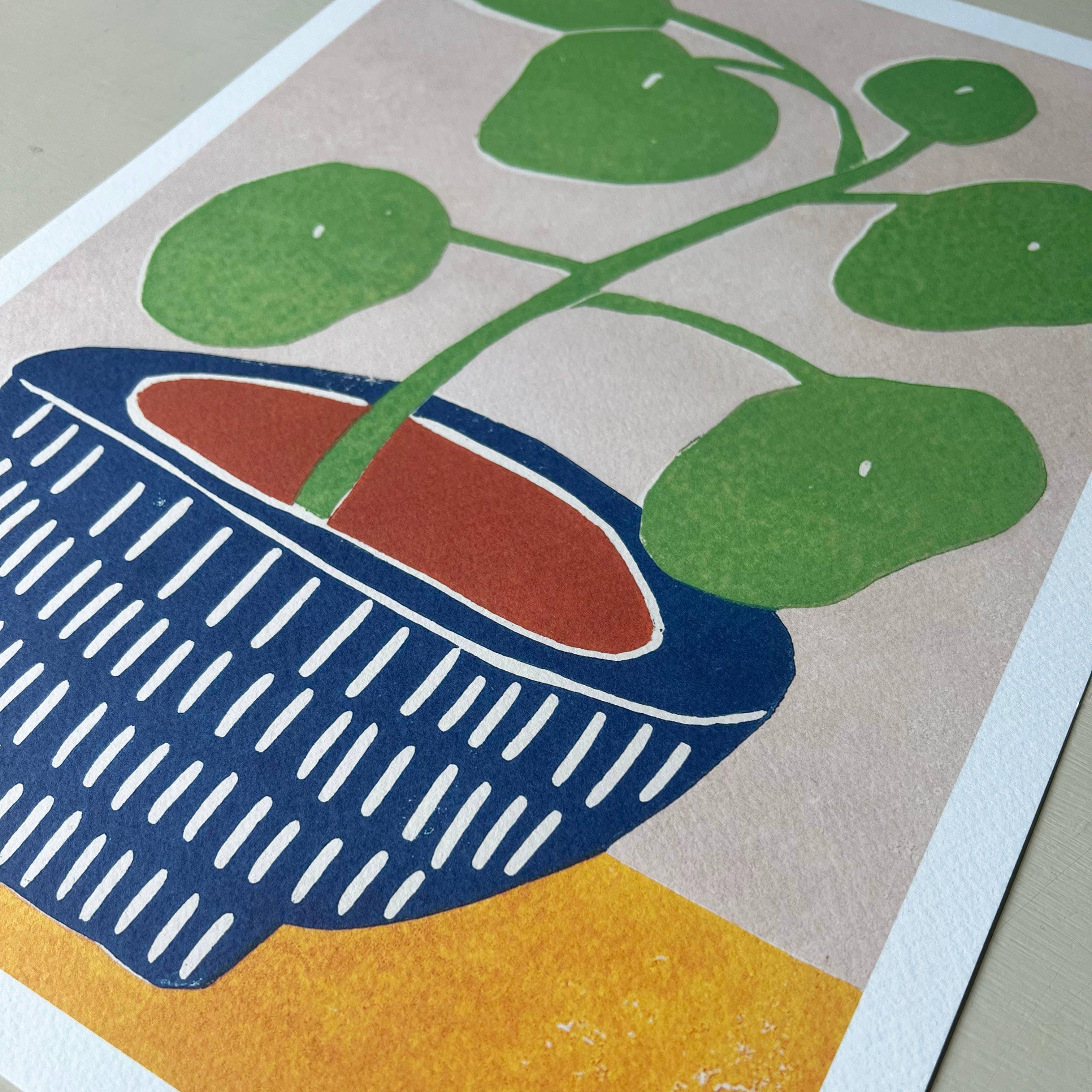 A beautiful print based on original linocut artwork by UK artist Luiza Holub. Featuring a pilea plant, this beautiful botanical inspired print is perfect for a living space or bedroom.
