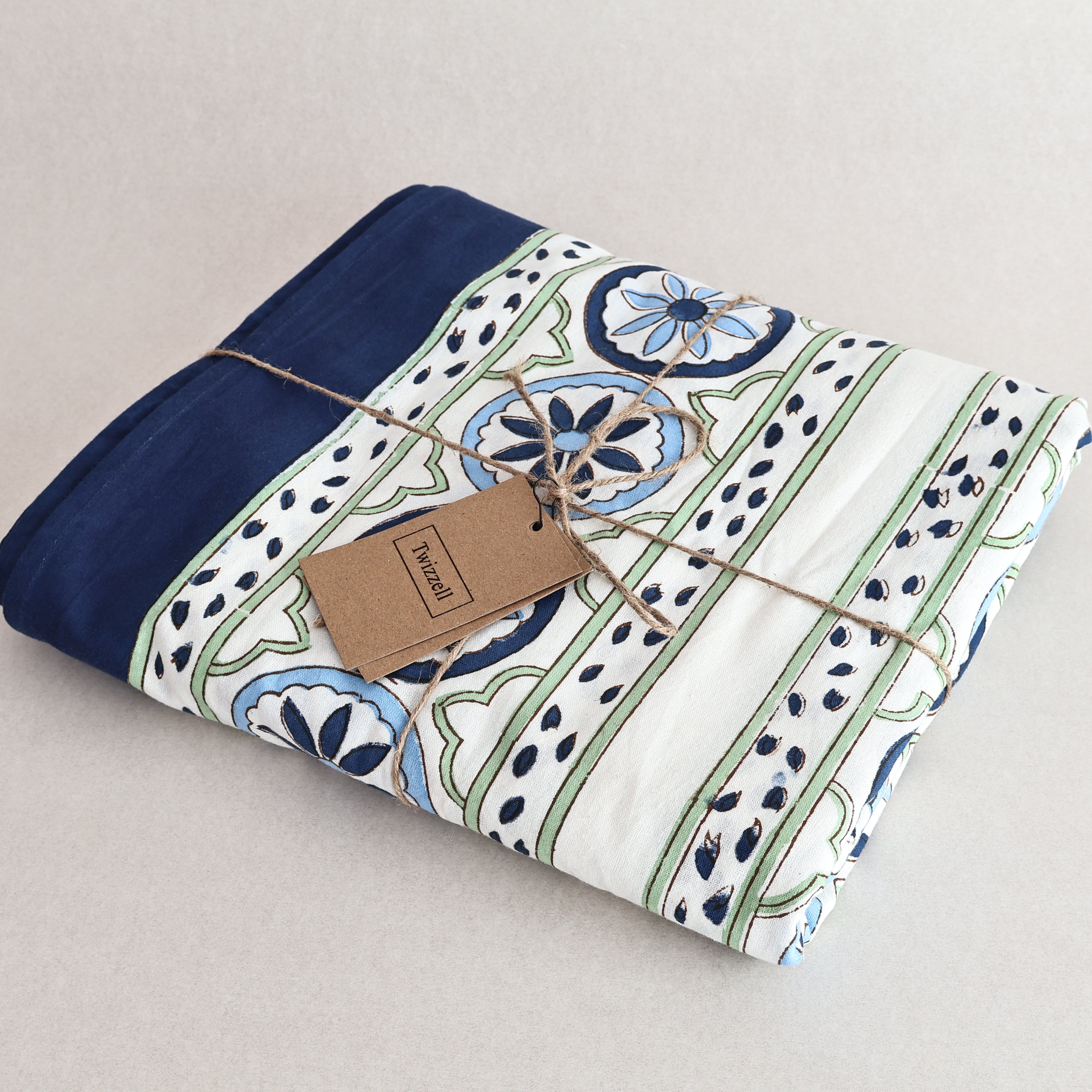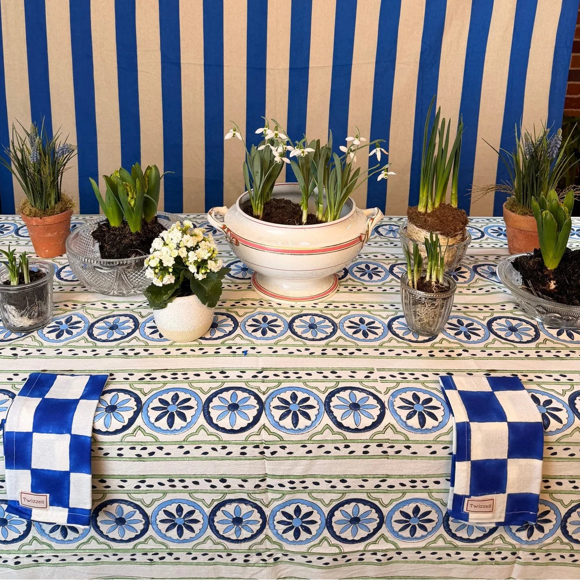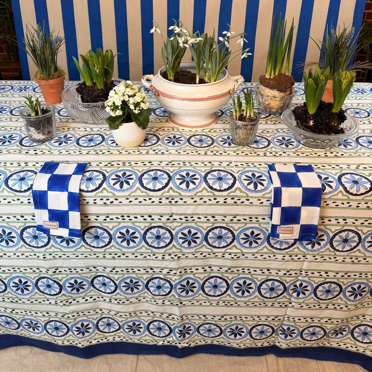 Indian Block Print Tablecloth - Sicilian Blue & Green