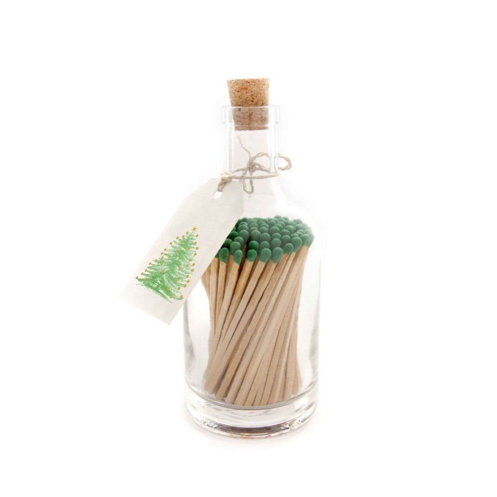 Long luxury Christmas matches in an apothecary glass bottle with a strike on the base. The matches feature clay coloured heads, a cork stopper, and Christmas themed tag. These make a perfect companion gift to our range of candles, each bottle contains average 125 matches.