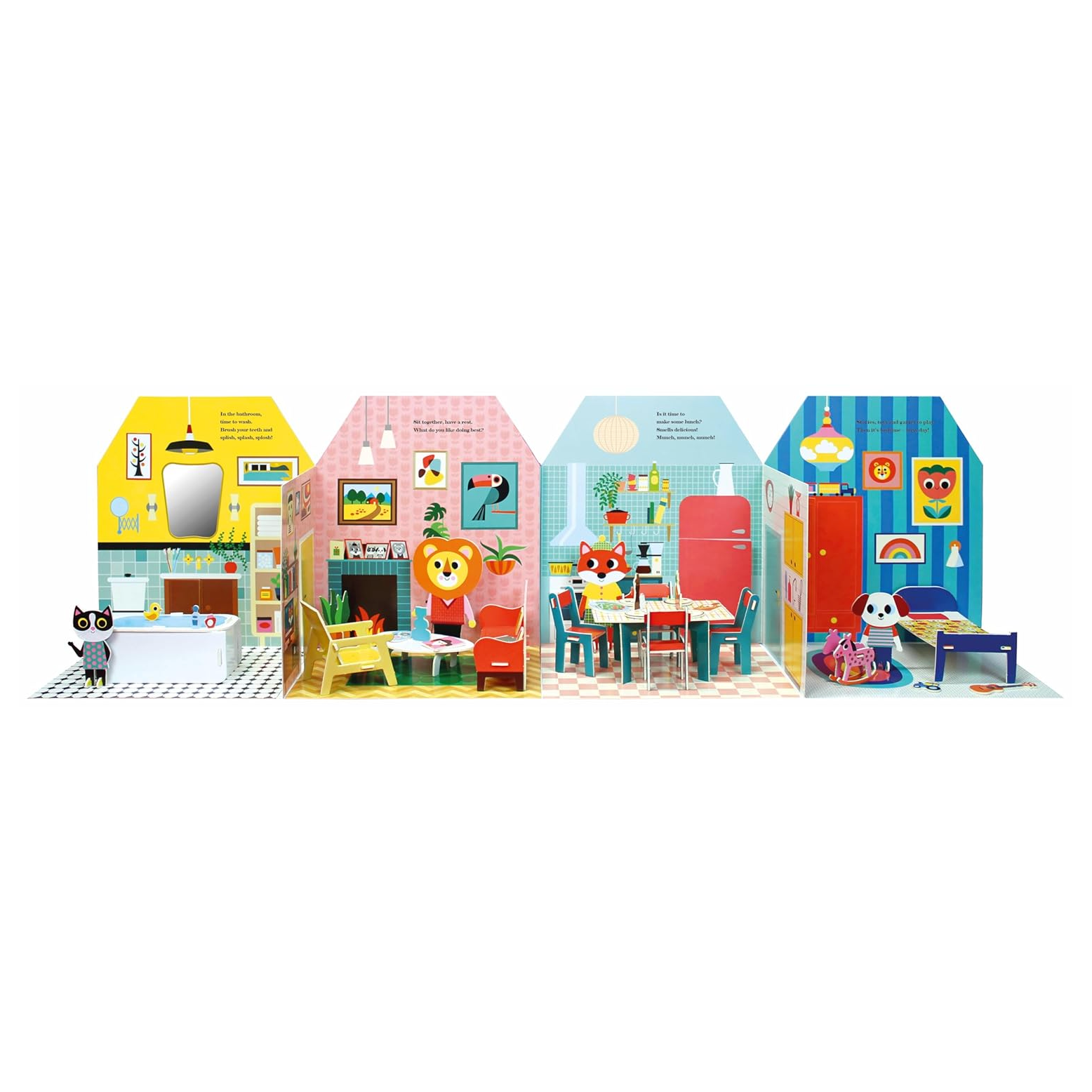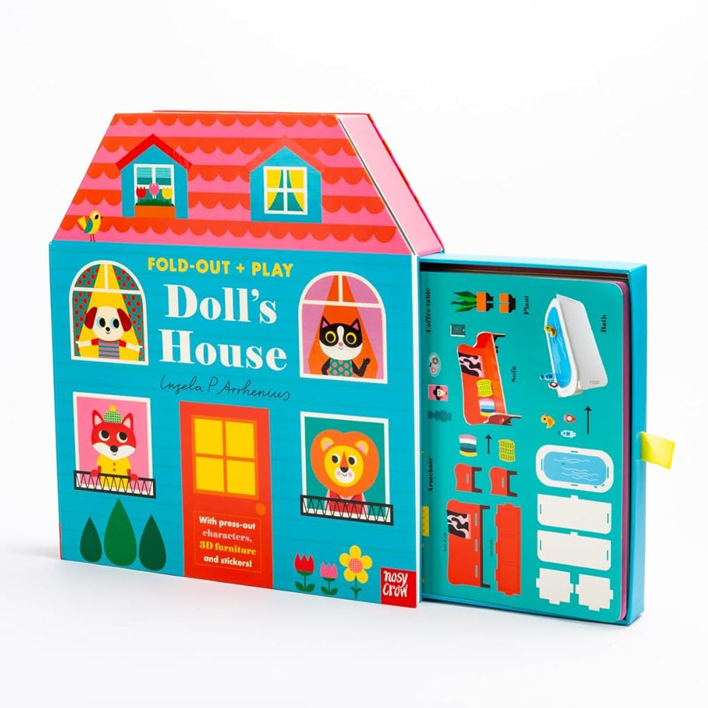 This fold-out book transforms into a stylish 3D doll's house that children can explore and play with.