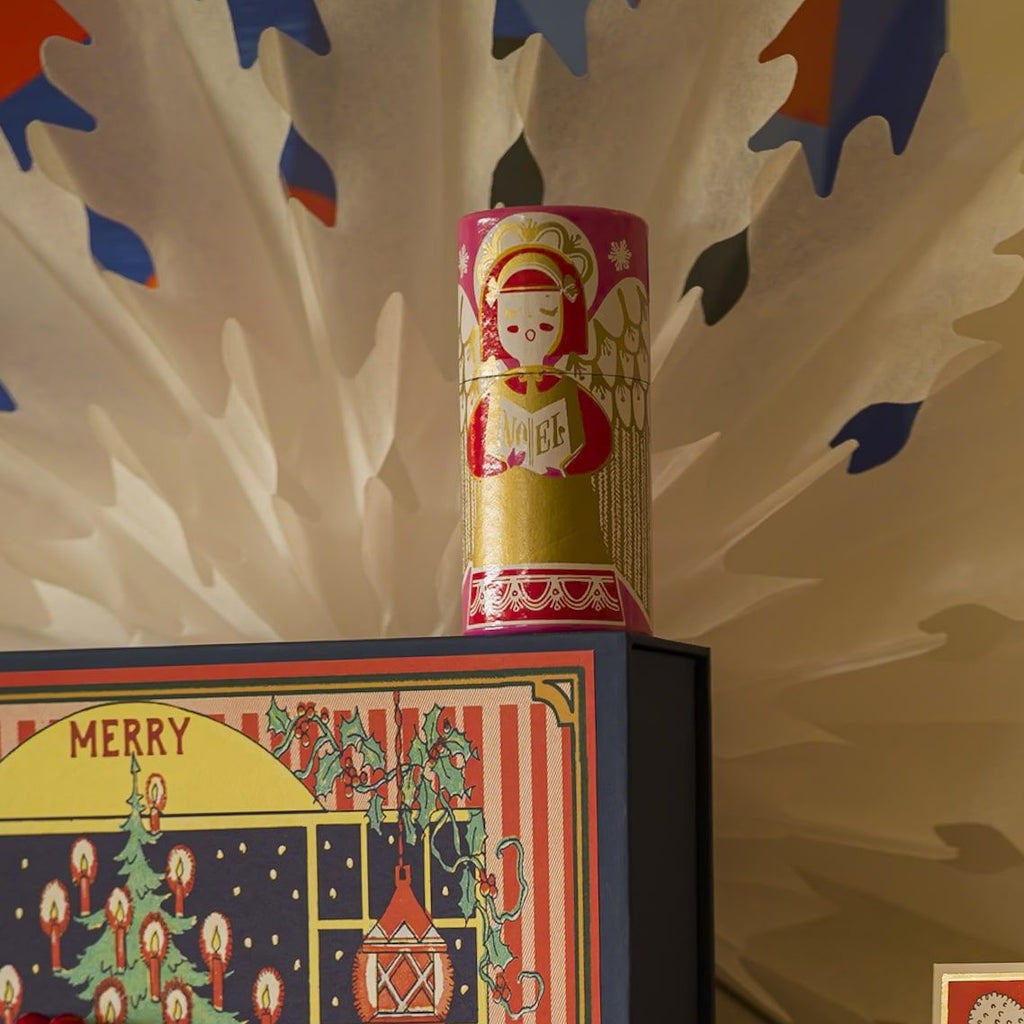 This screen-printed cylinder of matches from Archivist Gallery is sure to make your Christmas season merry and bright. Featuring a colourful angel printed in a seasonal red and glorious gold, these matches are sure to offer great wintery but practical decor.