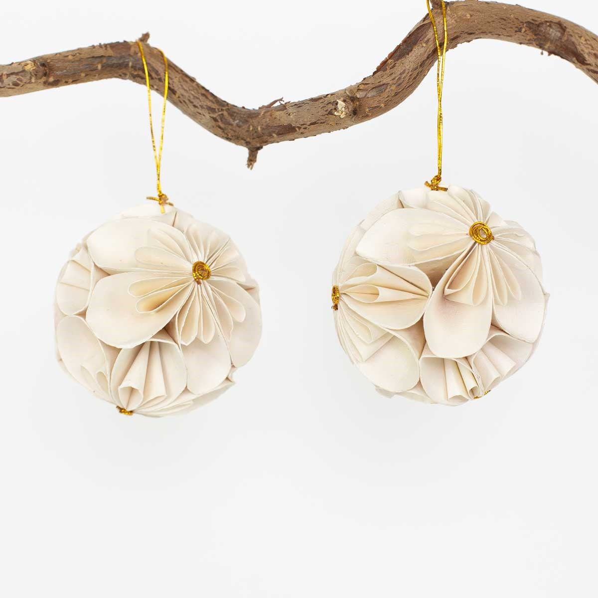 Handmade Paper Flower Christmas Baubles - Box of Two