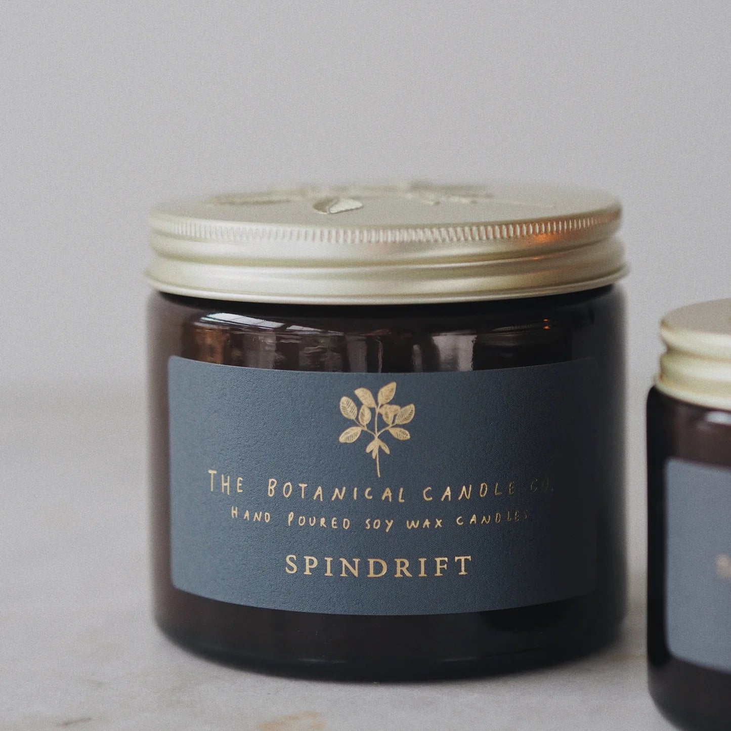 A blend of mint, sea salt, rosemary. Akin to pacing a windswept clifftop before descending into a sheltered cove, strewn with flotsam and jetsam. Gorse, salt and the crisp chill of the water swirl through the air. 'Spindrift' sea spray; especially : spray blown from waves during a gale.